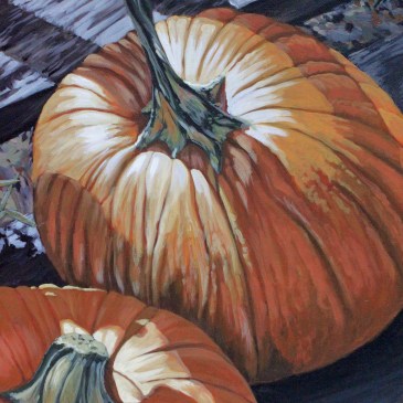 These two pumpkins on my front porch caught my eye as the sun set, and their orange glow was revealed. I captured it here on canvas, 16 X 20 acrylics, $250 Prints available on Fine Art America: https://fineartamerica.com/featured/autumn-orange-tomara-maitra.html